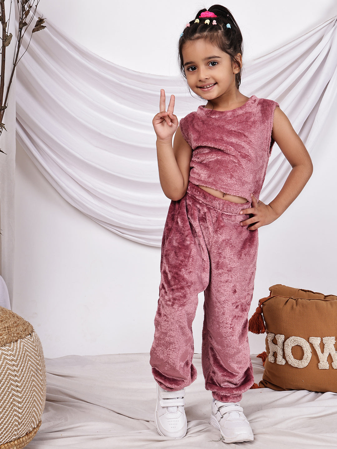 Girls Fleece Co-ord Set, Cami Top with Shrug and Trouser