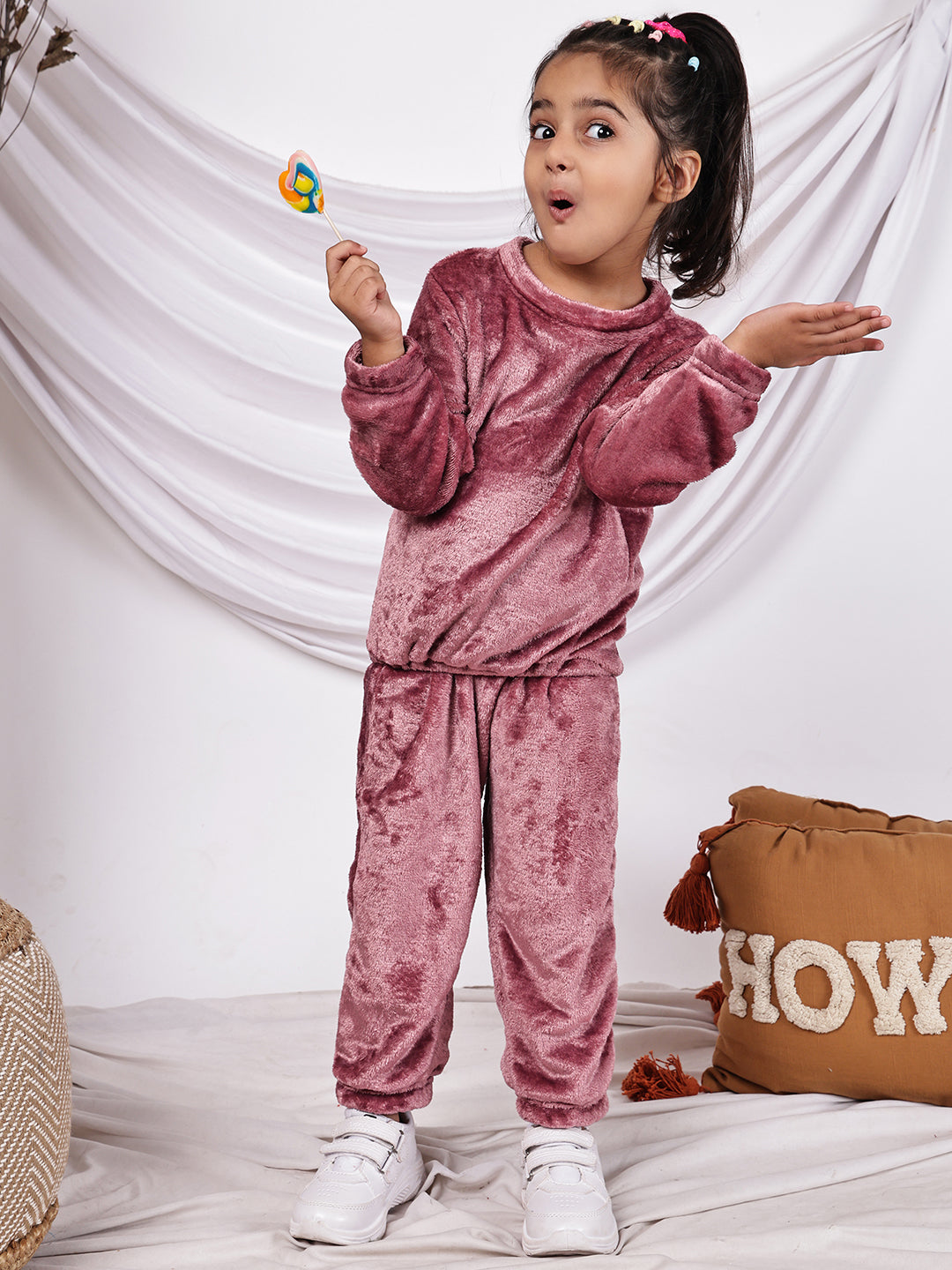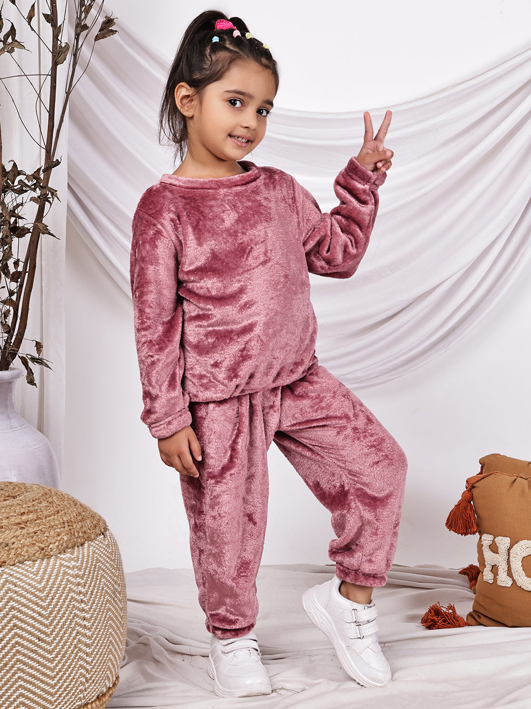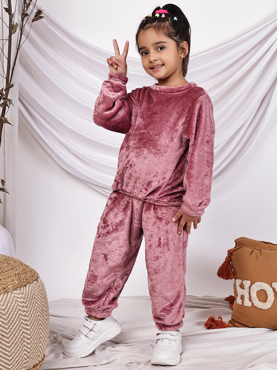 Girls 2-piece Fleece Round Neck Top and Trouser Co-ord