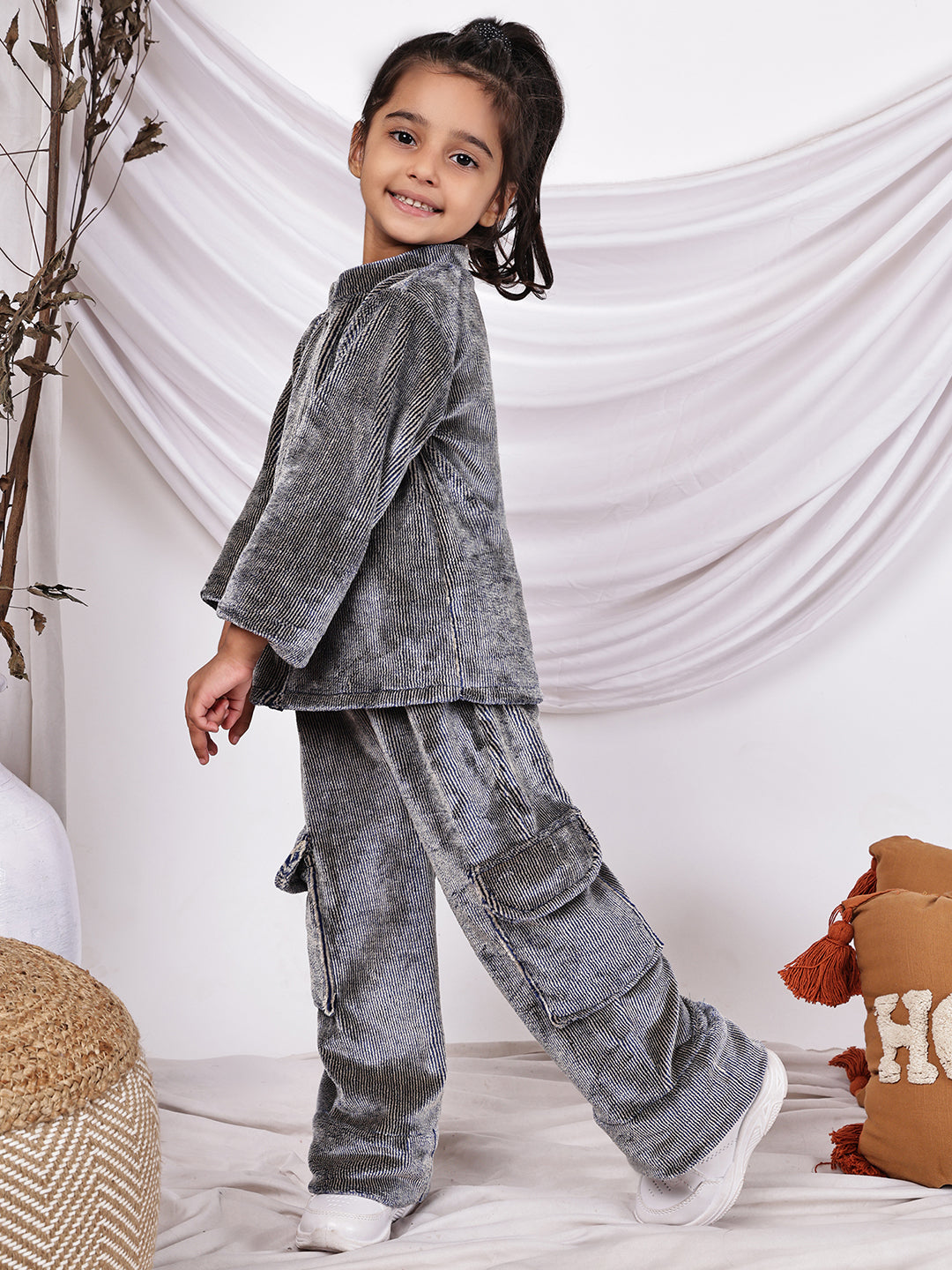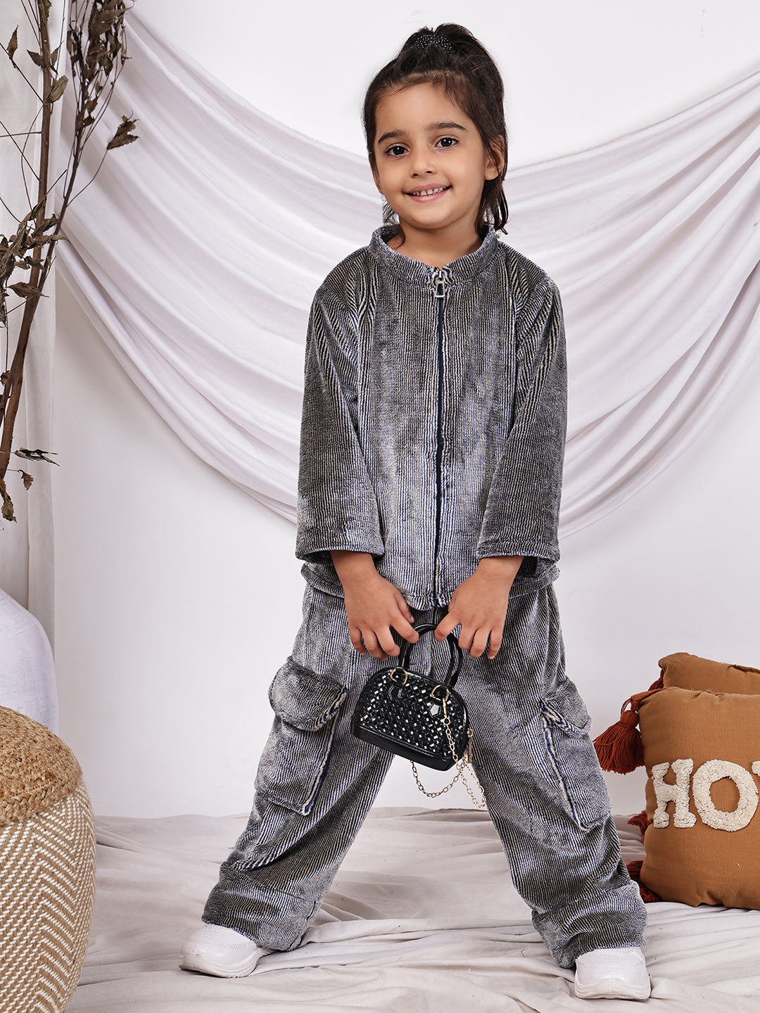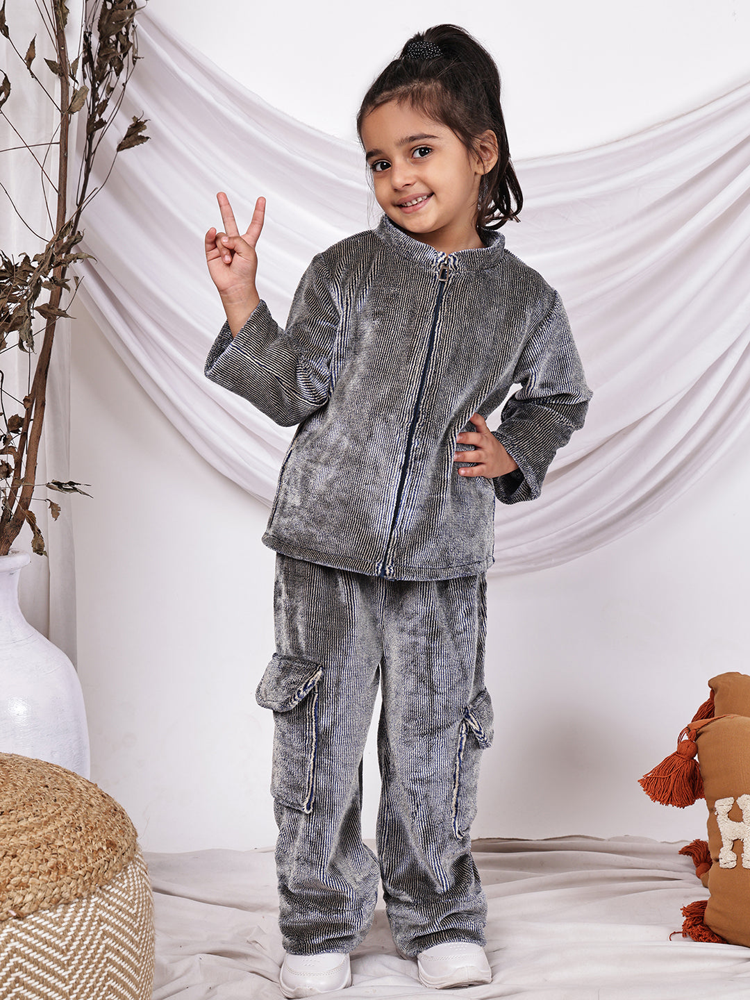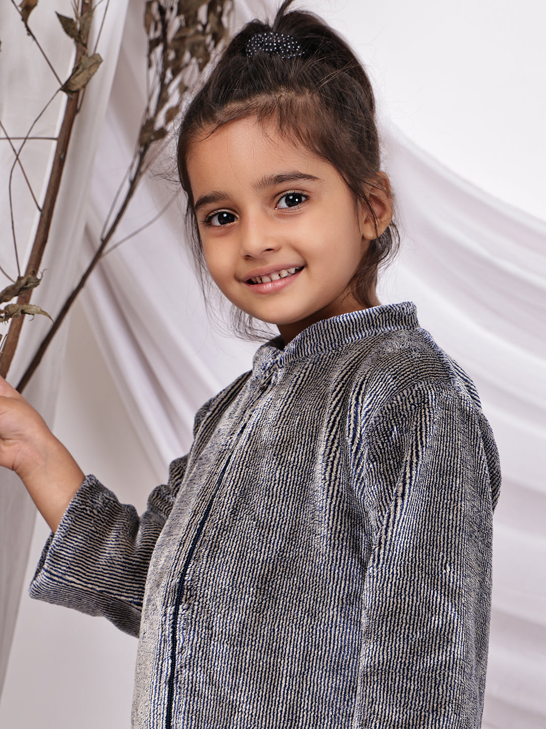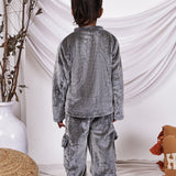 Elevate your little one's wardrobe with this charming velvet jacket and trouser set in sophisticated Grey. The luxurious velvet fabric adds a touch of elegance while ensuring comfort for all-day wear. The coordinated outfit features a well-tailored jacket with thoughtful details and matching trousers that create a polished look. Perfect for special occasions or dressy events, this ensemble combines style with practicality. The plush velvet material provides warmth while maintaining a dressy appearance, making it suitable for various formal settings. The Grey colour offers versatility and pairs beautifully with different accessories. The set is designed to allow freedom of movement while maintaining its refined appearance. This carefully crafted coordinate set makes dressing up a delightful experience for young fashionistas. Please refer to the size chart to ensure the perfect fit for your child.