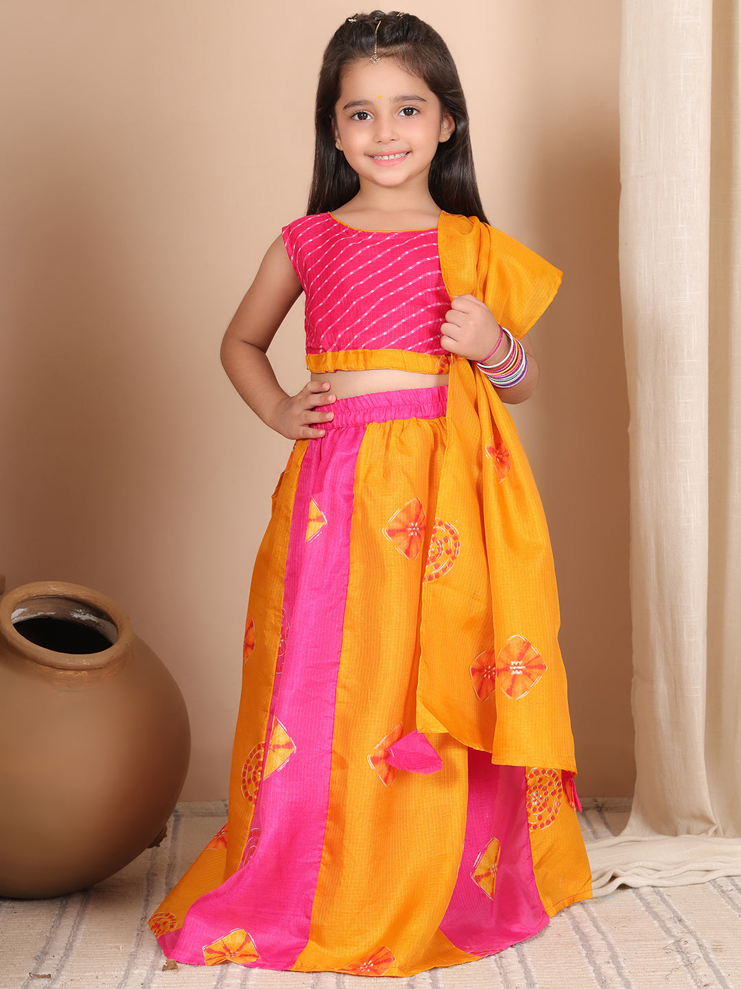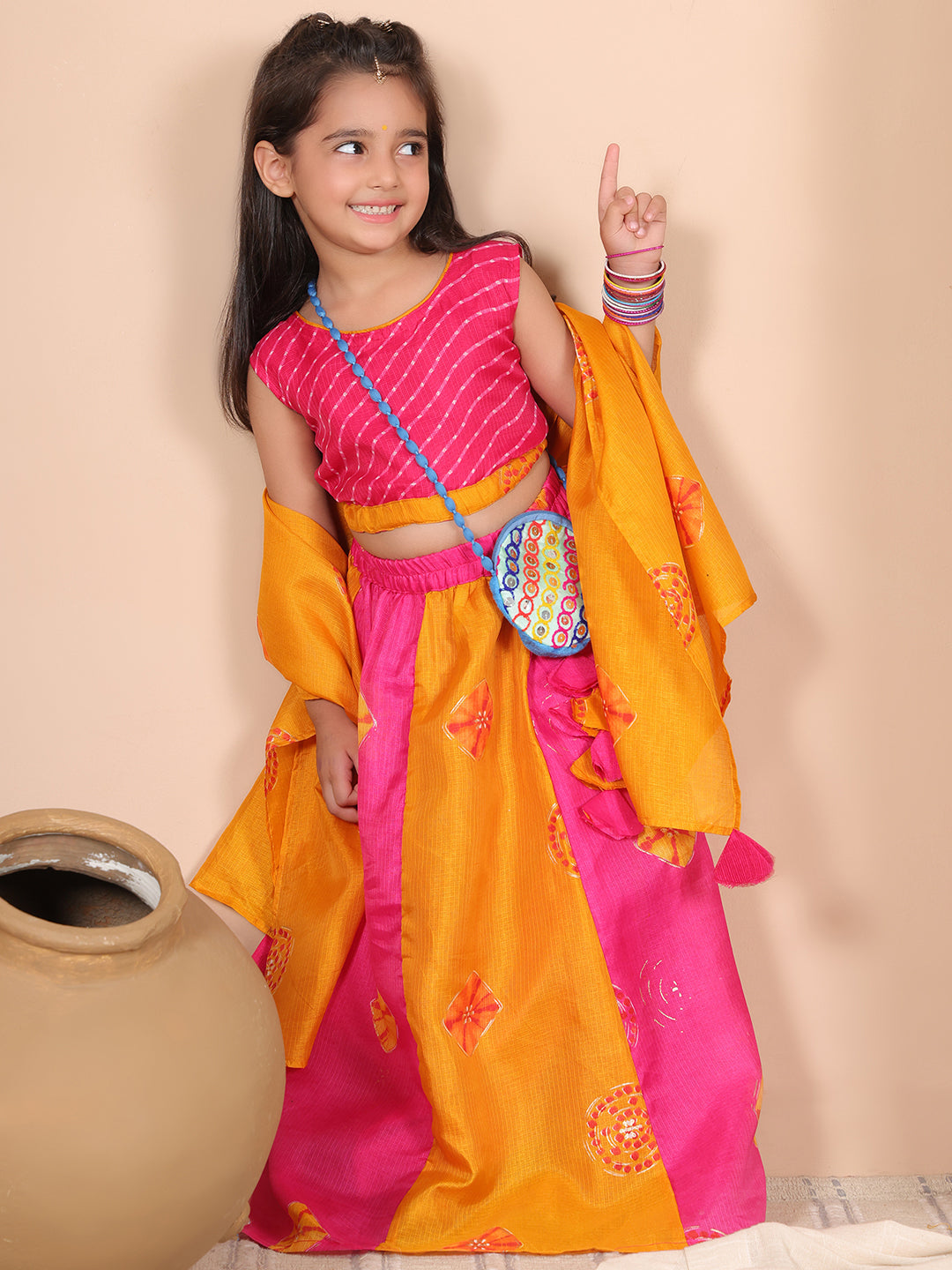 Girls Cotton blend Printed Lehenga Choli with dupatta Set