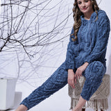 Wrap yourself in luxurious comfort with this plush fleece loungewear set. The two-piece ensemble features a cosy hooded top and matching bottoms in a beautiful pink hue, adorned with an elegant textured pattern throughout. The hoodie includes convenient kangaroo pockets and a relaxed fit, perfect for lounging or casual wear. The jogger-style bottoms feature elastic cuffs and a comfortable elastic waistband. Crafted from soft, plush fleece material, this set provides warmth and comfort during relaxation time. The textured design adds a sophisticated touch to this casual loungewear. The set combines style with functionality, making it ideal for year-round indoor comfort. The generous cut allows for easy movement while maintaining a flattering silhouette. Perfect for cosy nights in, lazy weekends, or as sleepwear during cooler months. The durable construction ensures this set will remain a favourite in your loungewear collection.