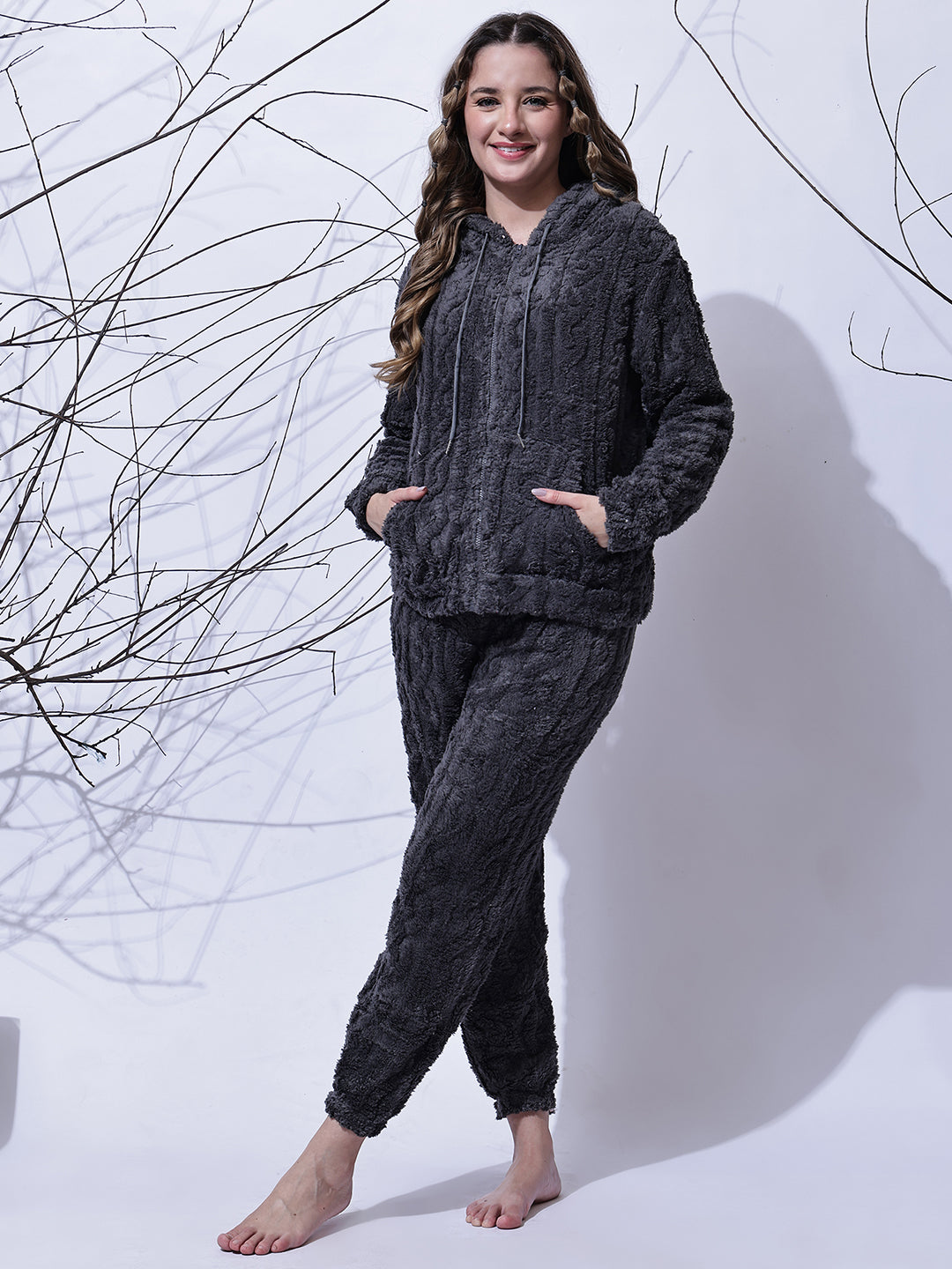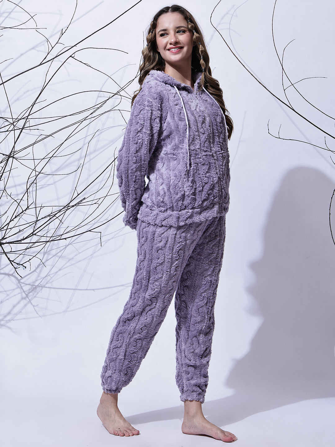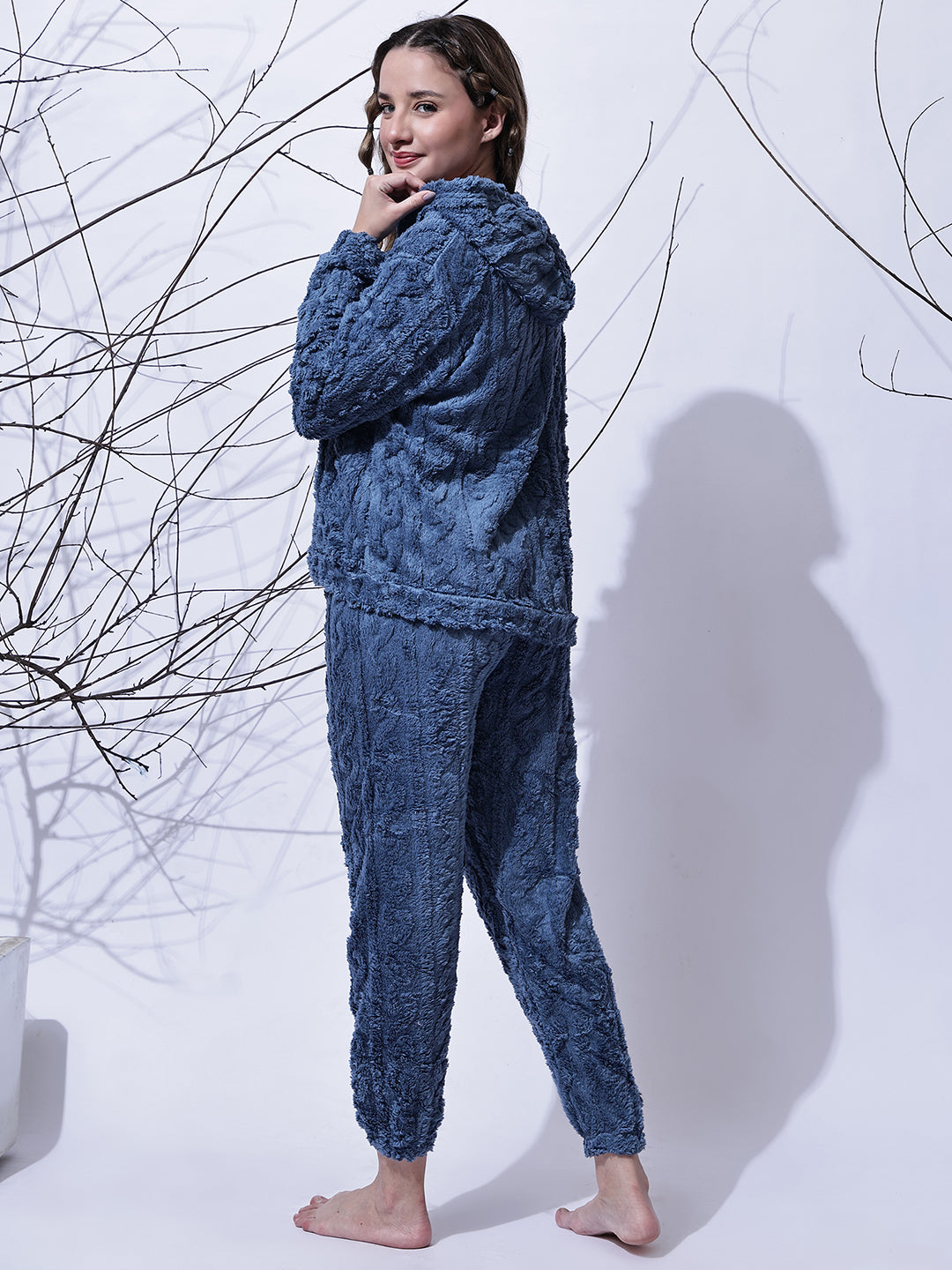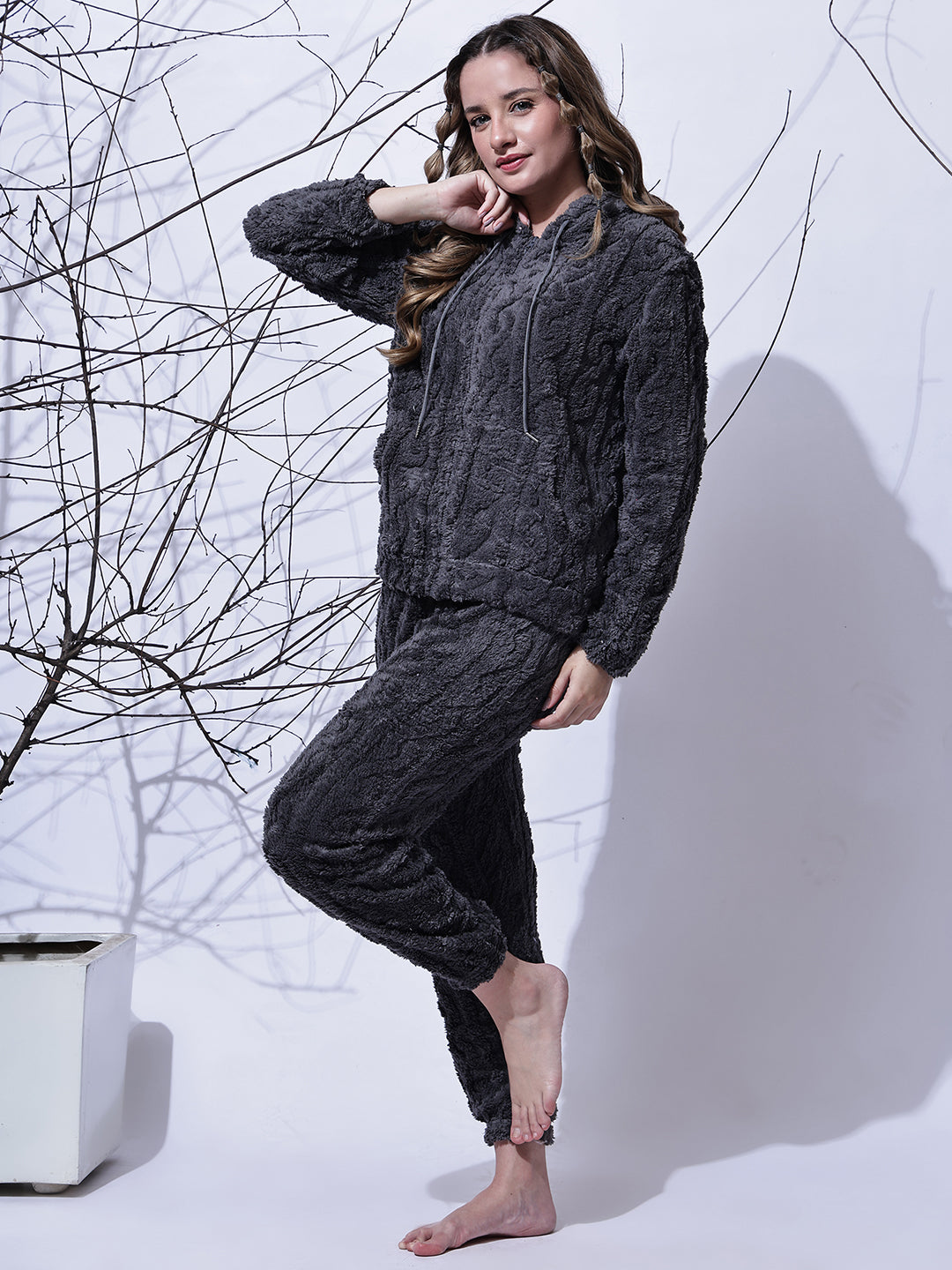 Plush Fleece Loungewear Set, Women's Two-Piece Hooded Pajama Set