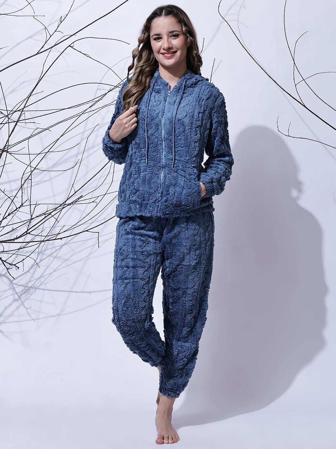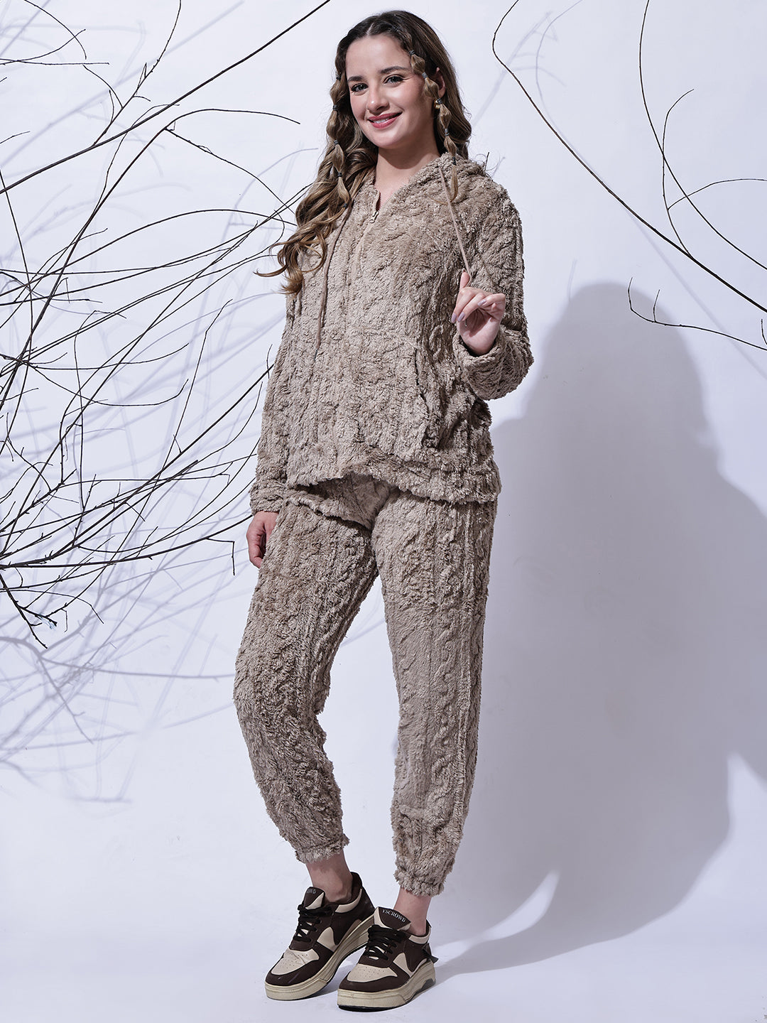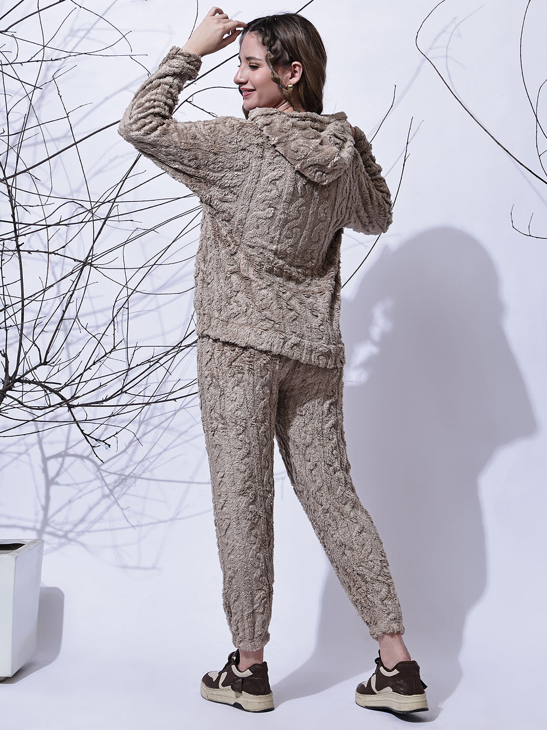 Plush Fleece Loungewear Set, Women's Two-Piece Hooded Pajama Set