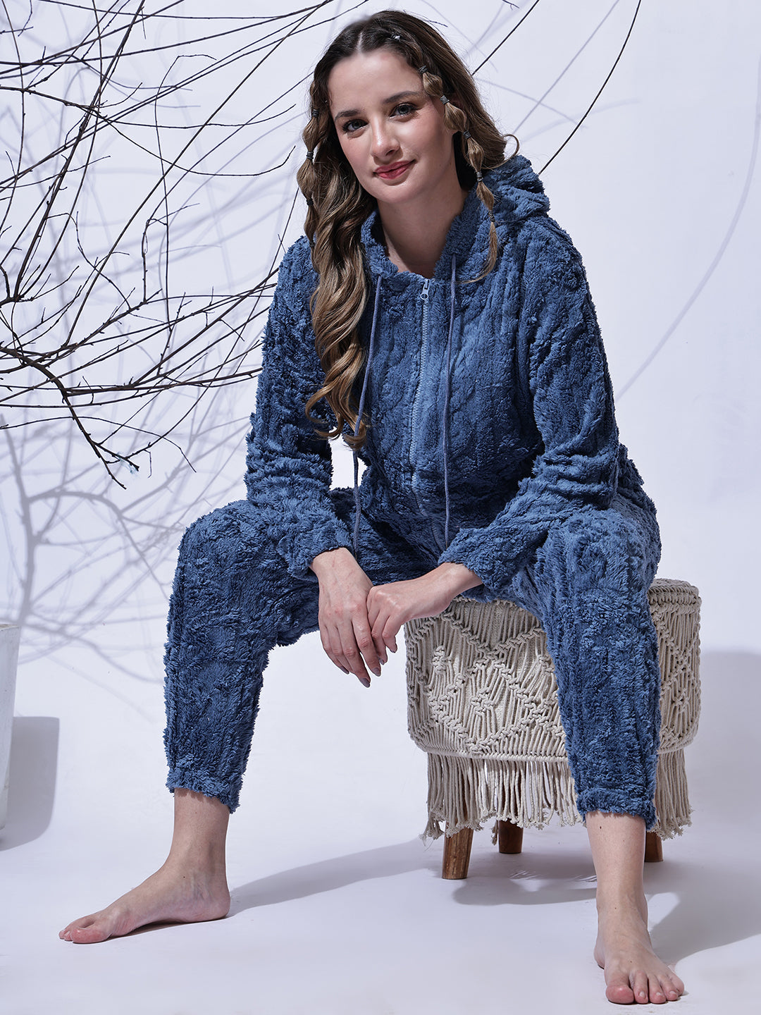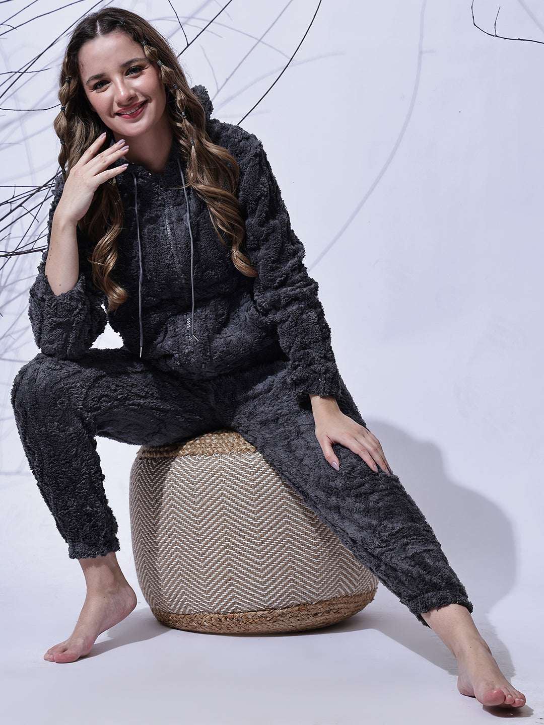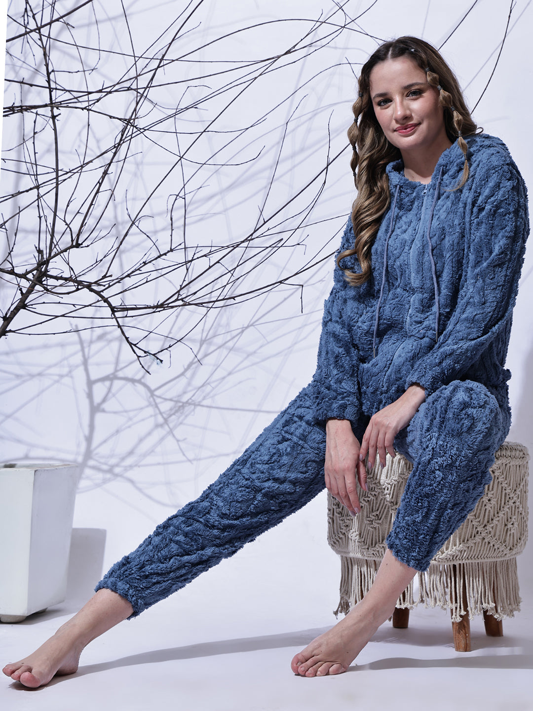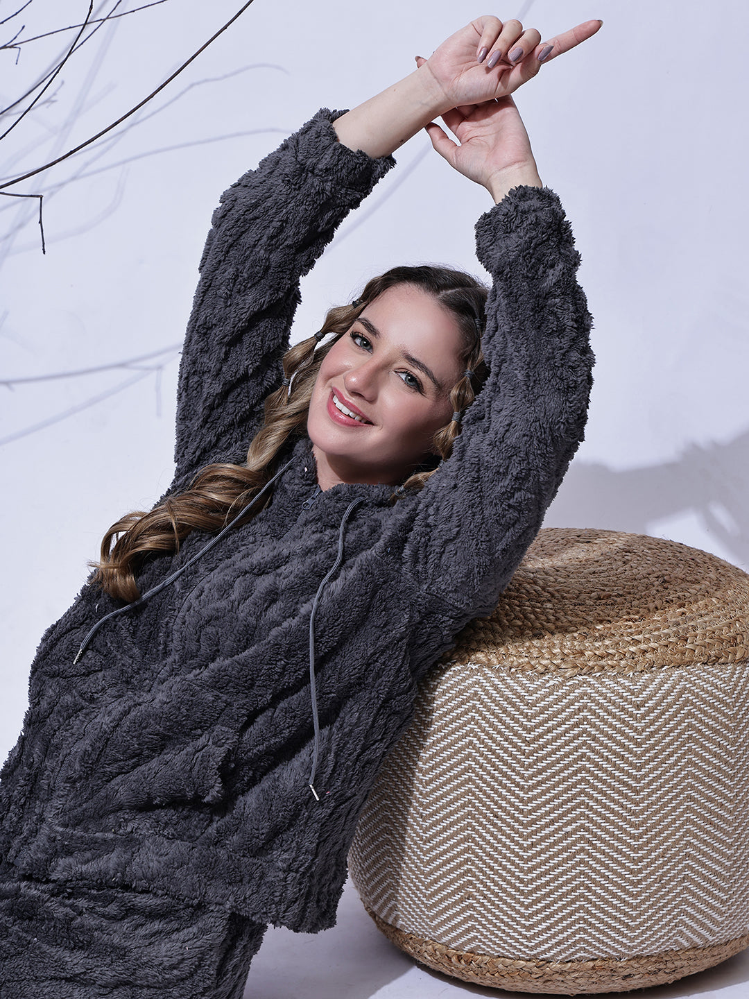 Plush Fleece Loungewear Set, Women's Two-Piece Hooded Pajama Set